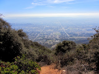 10:20 AM - Begin hike (3 to 4 hours later than I would normally begin a hike). I’m immediately struck by the amount of foot traffic...tons of people on the trail today...hundreds! I steadily climb through mature chaparral under sunny skies. Haze mutes the view of the human sprawl below. I run into Francis, a gentleman I met last year at a hike presentation at Azusa City Library. Enjoy chatting. I meet three gals who are picking up plastic bottles with a long extension grabber. Bless them for helping keep the trail clean. There is nothing in bloom except for a few occurrences of wild cucumber and its tiny white flowers. At 11:10 I reach the upper ridge and Glendora Ridge Motorway with views into San Gabriel Canyon and the expansive San Gabriel Mountains. I turn east to make the final climb to the summit.